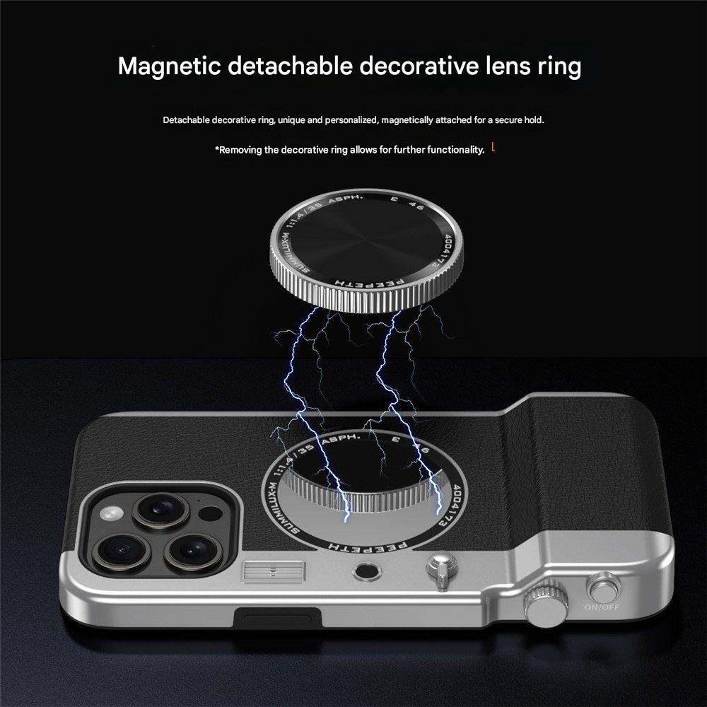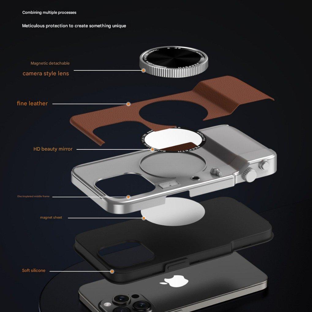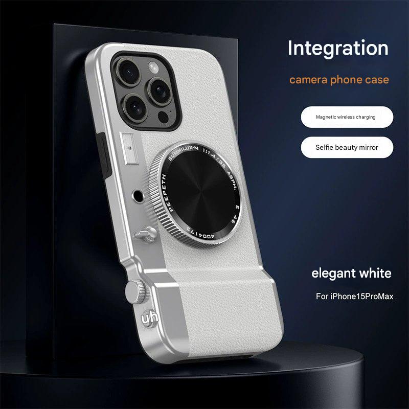 Κομψή δερμάτινη θήκη τηλεφώνου με ενσωματωμένο κουμπί κάμερας και συνδεσιμότητα Bluetooth.